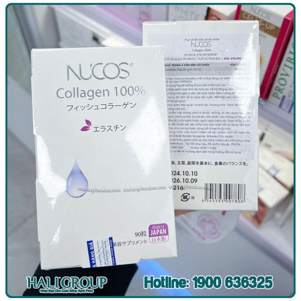 » Nucos Collagen 100% – Viên uống collagen từ Nhật bản với thành phần nổi bật gồm Collagen và Elastin giúp hỗ trợ thúc đẩy quá trình tự tổng hợp hàm lượng Collagen và Elastin của da để sở hữu được làn da khỏe mạnh theo thời gian